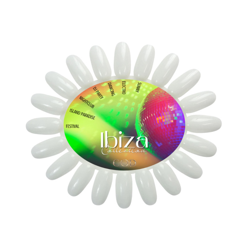 Natural or transparent blank color chart with its personalized label which includes the names of the Ibiza collection