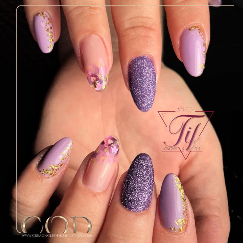 Ponga un gel de color similar a los glitters luego cataliza 1 min bajo UV, 30 bajo LED y 15 bajo LED UV.