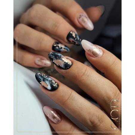 Un tono dorado, rosa dorado, plata, rosa plateado y arco iris