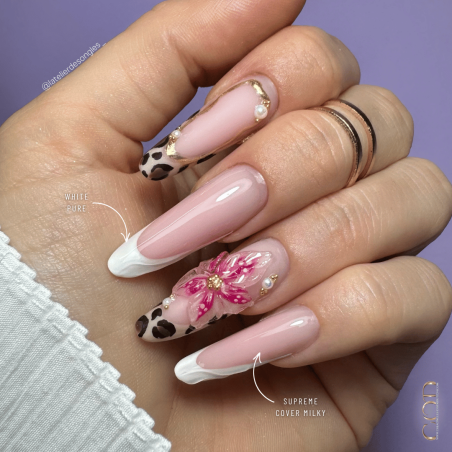 Pose en amande avec le Supreme Cover Milky et le White Pure en french