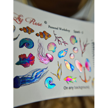 Water Decal 66 – Lucky Rose Spark 3 – Motifs marins holographiques